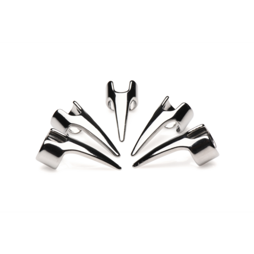 • Schuif elke ring aan je vingers en stel ze af voor de gewenste strakheid. Met de ringen omgetoverd tot klauwen, ben je klaar om een wereld van sensaties te verkennen.